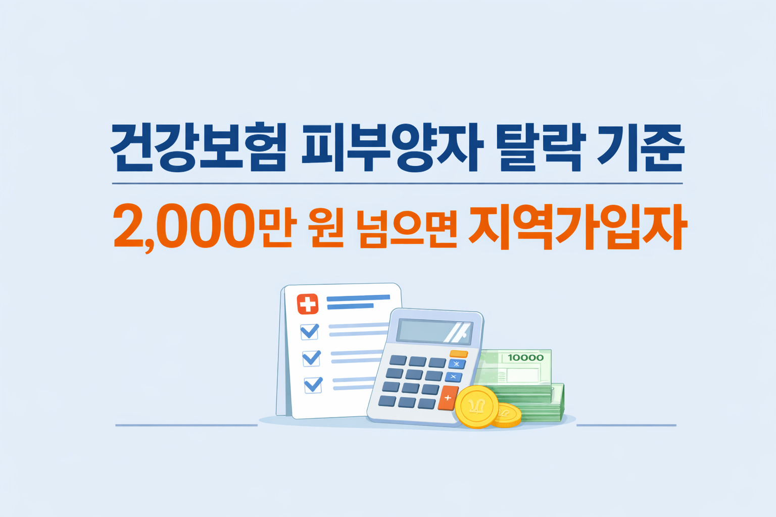 연간 소득 2,000만 원을 넘거나 재산 기준을 초과하면 건강보험 피부양자 자격이 박탈되고 지역가입자로 전환될 수 있습니다.