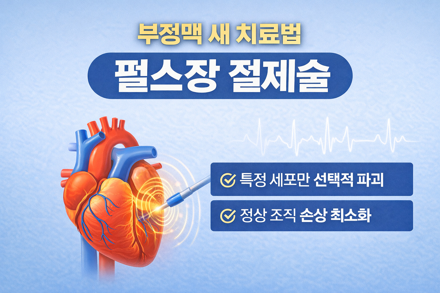 부정맥 치료는 그동안 심장 조직을 태워 없애는 방식이 주를 이뤄 왔습니다. 하지만 최근에는 주변 조직 손상을 최소화하면서, 문제 세포만 선택적으로 제거하는 새로운 치료법이 주목받고 있습니다. 바로 ‘펄스장(Pulsed Field) 치료’입니다.