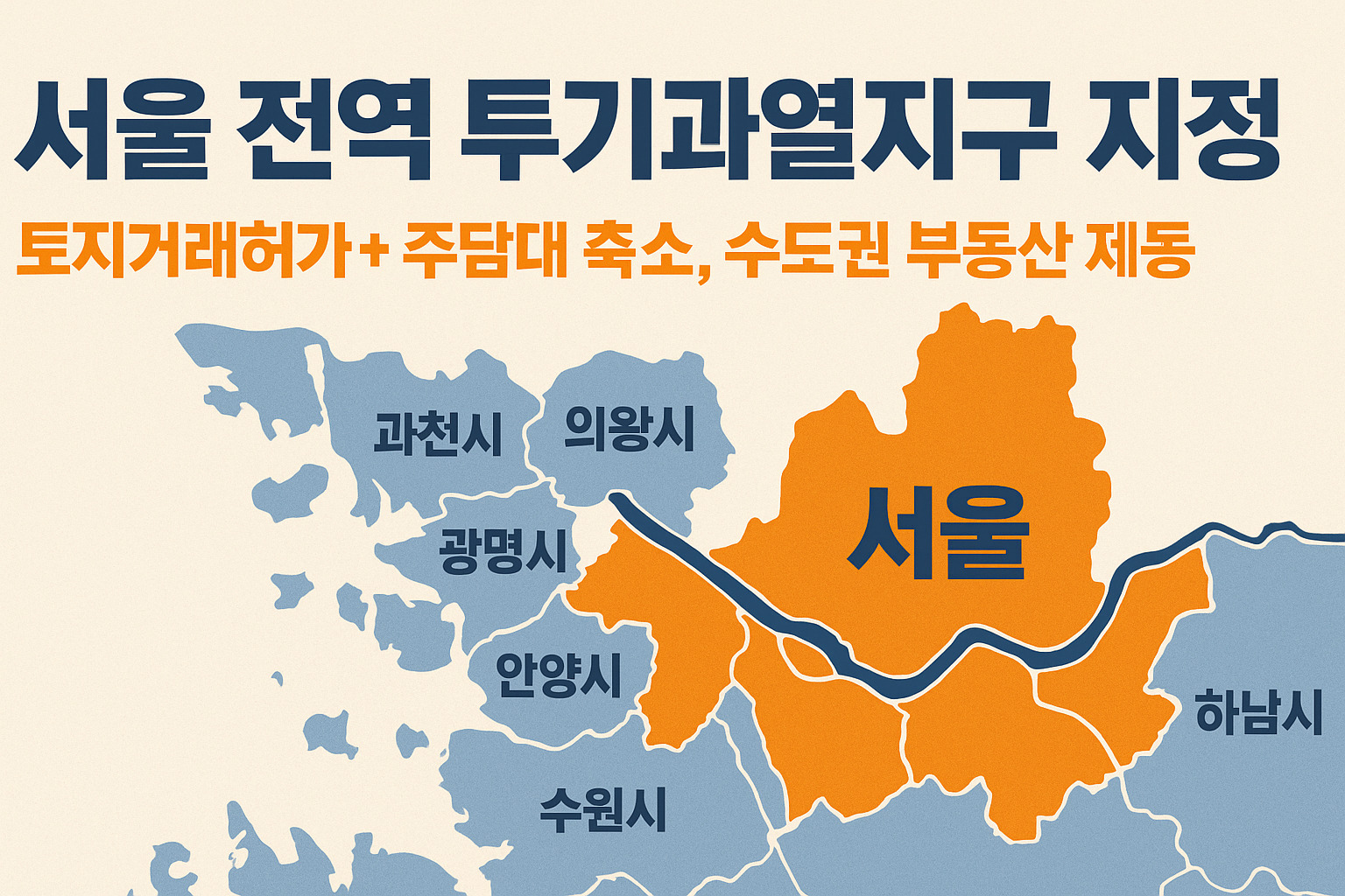 정부는 최근 몇 달간 서울 주요 지역과 경기권 일부에서 거래량이 빠르게 증가하고, ‘갭투자’ 형태의 매입이 다시 확산되는 조짐을 포착했습니다. 특히 금리 인하 기대감으로 인한 자금 유입, 청약 경쟁률 상승 등으로 투자 심리가 과열되자, 시장 안정화를 위해 서울 전역을 투기과열지구로 일괄 지정하고, 경기에서는 과천·광명·성남·수원·안양·용인·의왕·하남 등 12개 지역이 추가로 포함되었습니다.