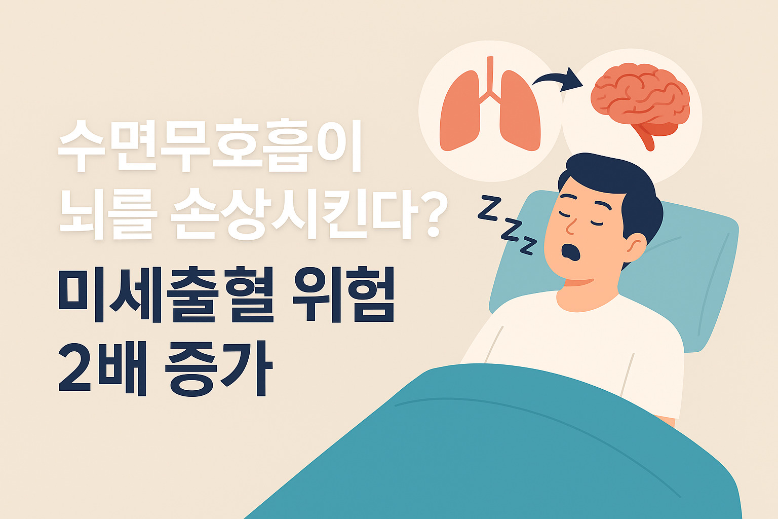 밤마다 들려오는 ‘드르렁’ 하는 코골이 소리를 대수롭지 않게 여기는 사람들이 많습니다. 피곤해서 그럴 수도 있고, 살이 조금 쪄서 생긴 일시적인 현상이라고 생각하기 때문입니다. 하지만 최근 연구에 따르면 코골이나 수면무호흡증이 단순한 불편함의 문제가 아니라 뇌혈관 손상과 직접 연결되는 심각한 위험 요인임이 확인되었습니다. 특히 기사에서 강조한 바에 따르면, 수면 중 무호흡이 반복되는 사람들은 뇌 미세출혈(cerebral microbleeds) 위험이 최대 2배까지 증가하는 것으로 나타났습니다. 이는 장기적으로 치매·뇌졸중 위험을 높이는 요인이 될 수 있어 더욱 주의가 필요합니다.