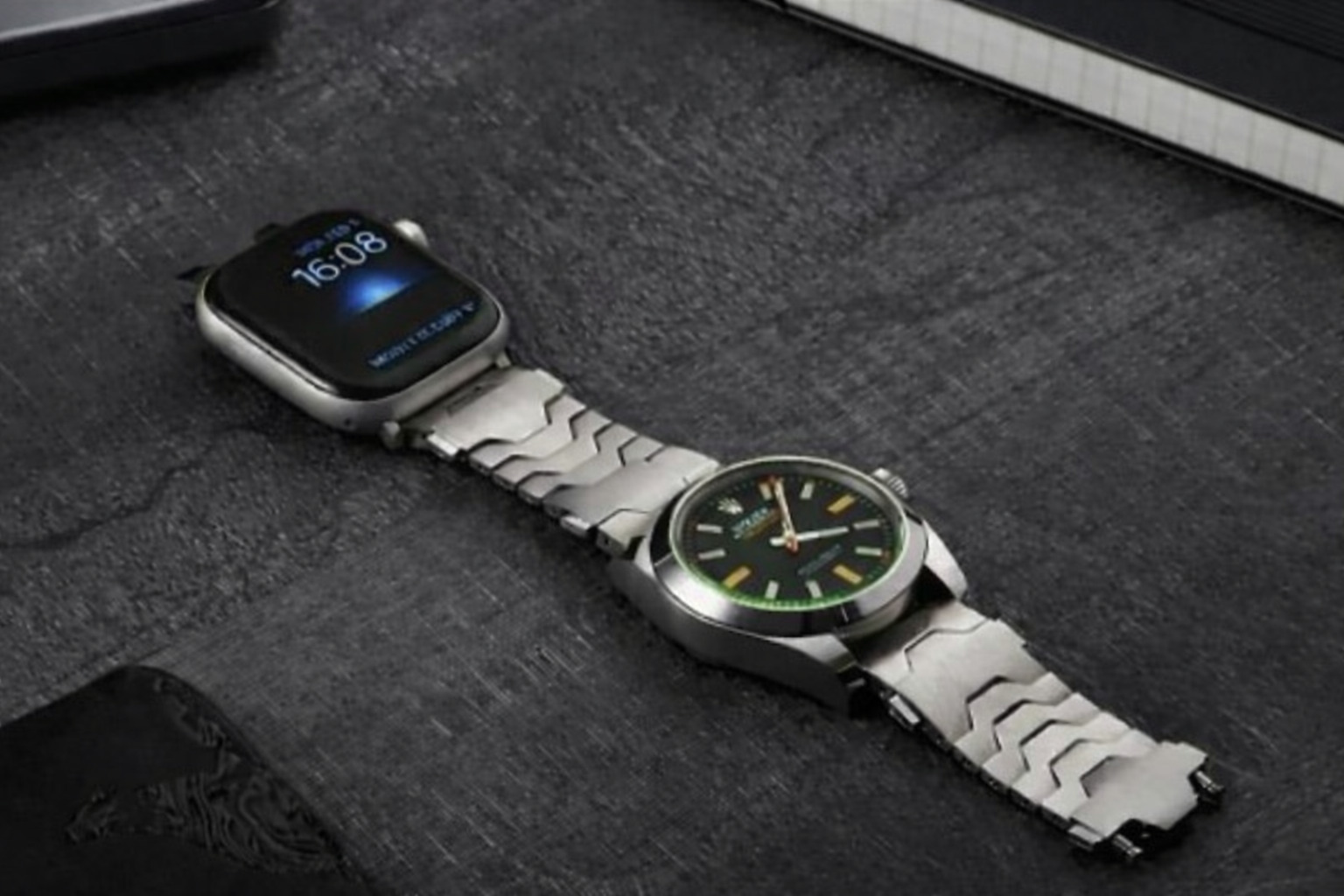 즉, 롤렉스를 개조한 것도 아니고, 애플워치를 시계 안에 넣은 것도 아니다. 두 개의 시계를 ‘동시에 착용’하되, 하나의 팔찌처럼 보이도록 만든 새로운 형태의 액세서리다.